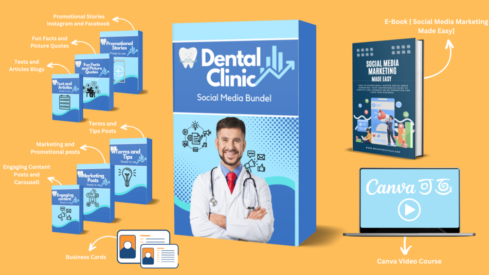 Welcome to the Dental Social Bundle, your all-in-one solution for enhancing your dental practice's online presence. In today's digital world, your clinic's visibility and engagement on social media are essential. The Dental Social Bundle is your key to achieving that and more, with over 200+ customizable Canva templates and a treasure trove of resources. Join the digital revolution, elevate your online presence, and watch your dental practice thrive.